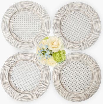 - Set Includes: x4 White Rattan Charger Plates (30cm x 30cm x 2cm)
