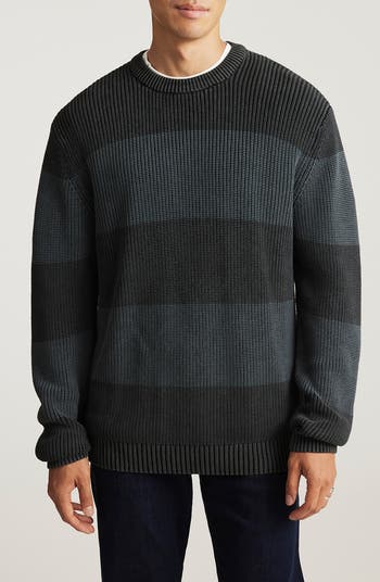 Muted hues keep the bold colorblock stripes from overwhelming your look in this cotton sweater knit for a fit that's easy to layer as the season's chill deepens.
