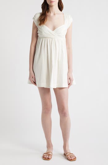 A sweetheart neckline and open back set a romantic tone on this flirty minidress finished with a tie-back bow and side-seam pockets.