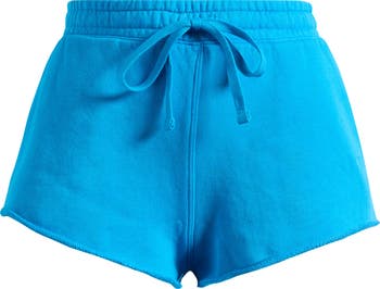 Your shortcut to chic comfort, these mid-rise organic cotton terry shorts have a worn-in look and feel. They feature an elastic waistband with an adjustable drawstring, side pockets and raw cut hems.