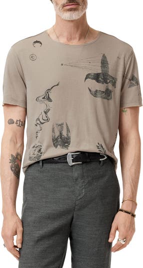 John Varvatos Raw Edge Double Layer Doodle Print T-Shirt, Alternate, color, Haze Grey