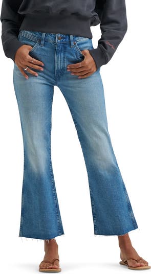 Fitted through the thighs and flared through the legs, these ankle-length jeans feature raw hems and signature Wrangler details for iconic Western style.