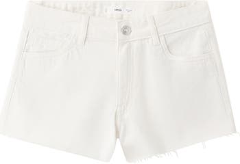 MANGO TEEN Raw Hem Low Rise Denim Shorts, Main, color, Off White