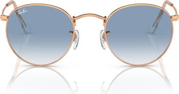 Slim, textured metal frames in a round silhouette are fitted with gradient lenses and adjustable, nonslip nose pads on these Italian-made sunglasses.