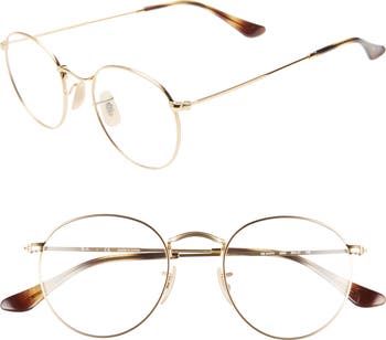 A rounded silhouette amplifies the retro-chic appeal of subtly textured metal frames styled with slim temples and an angular bridge.