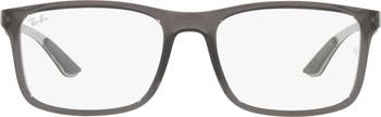 Logo-etched temples add a signature element to sleek optical frames in a smart, rectangular silhouette.