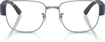 A square silhouette updates these polished optical glasses styled with angular temples and fitted with sturdy demo lenses.