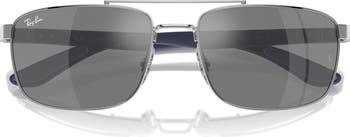 Rectangular metal frames in an iconic silhouette define Italian-made sunglasses designed with a brow bar and adjustable nose pads.