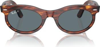 Gleaming logo hardware accents the temples of these polarized Ray-Ban sunglasses reimagined with a narrower lens shape and curved browline.