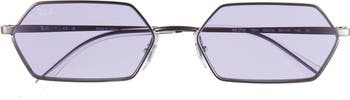 A sleek geometric silhouette adds retro-cool appeal to stylish sunnies fitted with adjustable nose pads for a secure fit.