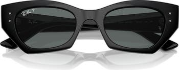 Raised logo hardware enlivens the temples of angular sunnies fitted with glare-reducing polarized lenses.