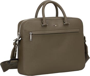 An everyday document case with a slim profile features multiple compartments and a detachable, adjustable strap for comfortable hands-free carry.