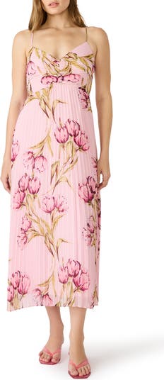 This floral-print dress is defined by allover pleating at both the bodice and skirt, creating soft texture and movement throughout. Designed with a V-neckline, adjustable straps and smocking at the back for a flexible fit, it falls to a breezy midi length that's easy to wear all season.