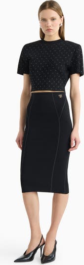 Jewel-embellished and structured, the Raya is a cropped tee featuring hot-fix detailing and diamond pointelle knit for subtle shine and texture. Removable shoulder pads enhance the defined shoulder line.