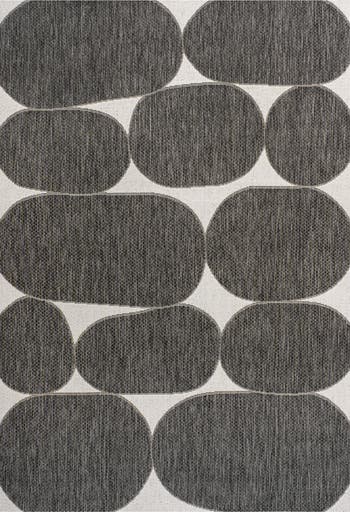 This rug's modern geometric pattern is inspired by organic shapes in Scandinavian design. It's made from durable synthetic fibers woven into a bold pattern. Use this stylish rug outdoors, or in the bedroom, living room or dining room.