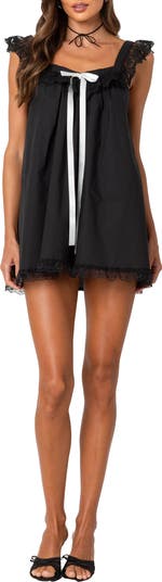 Sugar meets spice in a cotton-blend dress edged in sweet lace and cut to a seriously leg-baring length.