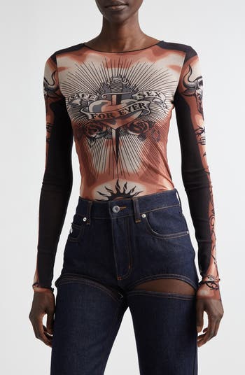 Re-Edition Tattoo Trompe l'Oeil Long Sleeve Mesh Top