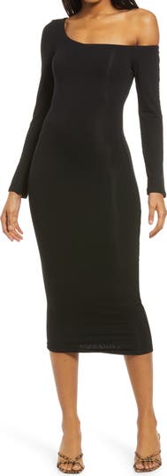 Date night is calling in this sleek one-shoulder midi cut from buttery-soft double-layer fabric that holds and shapes in all the right places.
