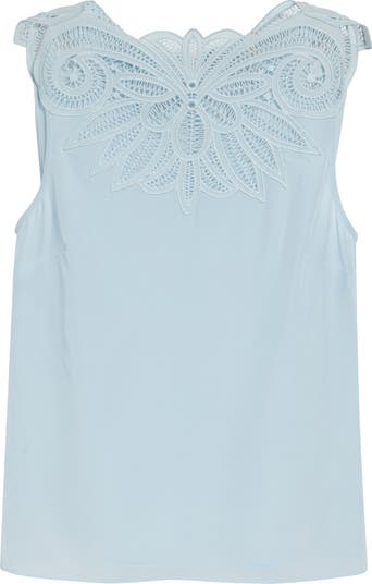 Intricate botanical embroidery unfurls across the yoke of this ethereal silk crepe de chine top designed in a relaxed silhouette.
