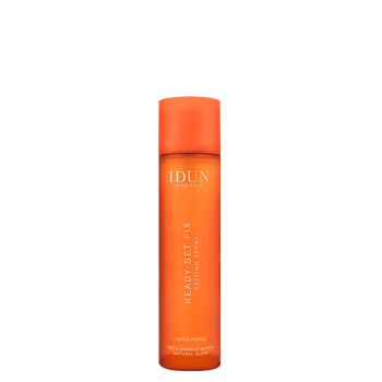 READY SET FIX. An ultra-fixing setting spray that sets and extends the wear of your makeup. IDUN Minerals Ready Set Fix Setting Spray instantly secures your makeup for a long workday or a night out, so you’re ready for anything! Use it as the last step of your makeup routine to melt makeup perfectly into the skin for a seamless result. With its weightless and non-sticky formula, the spray leaves your skin with a natural glow. IDUN Minerals Ready Set Fix Setting Spray is vegan, fragrance-free and dermatologically tested. Suitable for all skin types, even the most sensitive. The bottle is recyclable and made of 100% recycled PET. The pump and cap are made of PP plastic.
