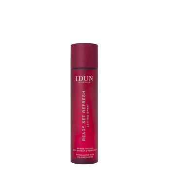 A lightweight, all-in-one, ultra-fine face mist that primes the skin, sets makeup, refreshes and hydrates for a luminous and smooth complexion. IDUN Minerals Ready Set Refresh Setting Spray is a multifunctional product that can be used just before makeup, in between layers of makeup and as the last step of your makeup routine to melt makeup perfectly into the skin for a seamless result. It can also be used as a hydrating mist or a skin refresher anytime during the day, for an instant moisture boost or to refresh your makeup. The vegan formula feels weightless on the skin, makes makeup last longer and gives an instant refreshing and hydrating effect with a non-sticky, naturally radiant finish. Formulated with skin-loving ingredients, including 3 % niacinamide that helps strengthen skin and improve complexion.