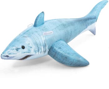 RIDE-ON FLOAT: REALISTIC SHARK - 6' X 40" - Get ready to sink your teeth into the fin-tastic H2OGO! Realistic Shark Kids Ride-On Pool Float! Take the inflatable realistic shark ride-on for a spin at the pool, lake or beach and enjoy a day filled with play. EASY TO RIDE: With its heavy-duty handles to help your child, age 3 and up, climb aboard and hold on, kids will have a great time playing on the adventurous creature while soaking up a sunny day. Easy to inflate, deflate and store, your child can enjoy the Realistic Shark Ride-On for many seasons to come. With the H2OGO! Realistic Shark Ride-On Pool Float, water and seaside fun have only begun! Let your child’s imagination run wild as they take a spin on their very own realistic shark ride-on, bringing seaside thrills and poolside excitement to life with every splash! Perfect for pool, lake, or beach days all season long. This shark float ensures hours of entertainment and poolside play for your little adventurer. OVERVIEW: Realistic shark graphics. Heavy-duty handles to help kids climb aboard and hold onto. Easy to inflate, deflate and store. Size: 6 ft. x 40 in. Suitable for kids, ages 3+.