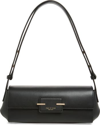 Crafted from smooth leather, this slim, structured bag features a magnetic flap closure with a logo patch framed by sleek metal bars. Adjust the strap to sling it over your shoulder, wear it across your body or carry it as a clutch.