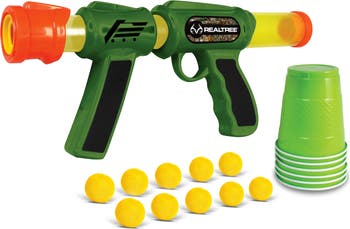 - OFFICIALLY LICENSED: Iconic high quality camouflage from RealTree accents the blaster, while the yellow balls and bright green cups make for good visibility.