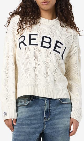 Go your own way wearing this relaxed drop-shoulder sweater knit with cozy cable stitching for warmth and texture.