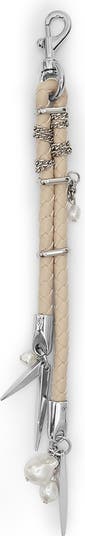Add a little flair to your favorite bag with this braided bag charm featuring chains, charms and pearly beads for an eclectic mix of textures.