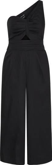 Flirty ruching perfects this stunning cotton jumpsuit flaunting a cutout on the bodice and sweeping wide legs.