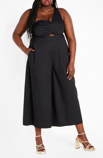 Flirty ruching perfects this stunning cotton jumpsuit flaunting a cutout on the bodice and sweeping wide legs.