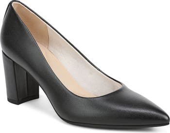 A pointy toe furthers the streamlined profile of faux-leather pump featuring premium underfoot cushioning and lifted by a wrapped block heel.