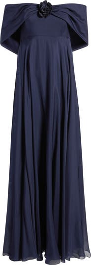 Rebecca Rosette Detail Off the Shoulder Silk Chiffon Gown