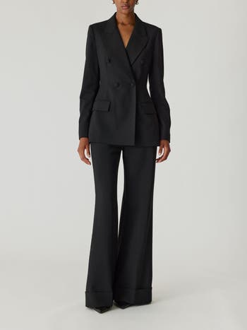 Featuring a structured silhouette and classic double-breasted design, this blazer's fabric was made in Turkey and exudes timeless elegance. Perfect for both professional and evening settings, it offers a polished look with its refined tailoring and versatile style.