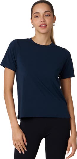 Meet your new go to crewneck tee that is the just right length and effortlessly pairs perfectly with leggings. A wardrobe staple that is made in soft pima cotton, cool to touch modal, and a hint of stretch for ultimate comfort and style. Biocompact finish keeps the fabric long lasting and smooth.
