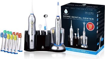 Pursonic S625 Rechargeable Sonic Toothbrush and Rechargeable Water Flosser with 12 Brush Heads, 2 floss heads, 2 tongue brushes included