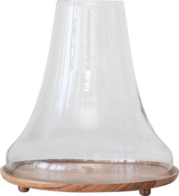- A stunning reclaimed glass cloche that has a mango wood base in natural, giving it a rustic and elegant look