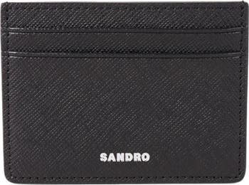 Reconstituted leather cardholder with 4 card compartments, with embossed SANDRO signature logo.
