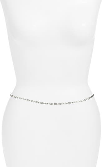 Make your ensembles shine from the center out with this crystal-stationed belly chain plated in 18-karat gold.