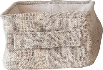 Rectangular Hemp Fiber and Metal Bin with Cotton Canvas Lining and Handle