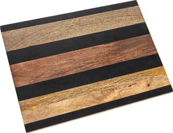 Rectangular Mango Wood Cheese and Cutting Board with Stripes, Natural and Black