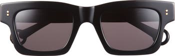 Rectangular frames lend classic appeal to these sleek sunnies with golden logos on the temples.