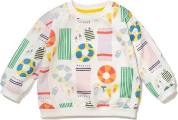 This adorable baby-sized sweatshirt—made from recycled and organic cotton French terry—features beachy graphics perfect for manifesting warm weather.
