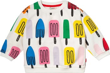 This adorable baby-sized sweatshirt—made from recycled and organic cotton French terry—features bright sunshine graphics perfect for manifesting warm weather.