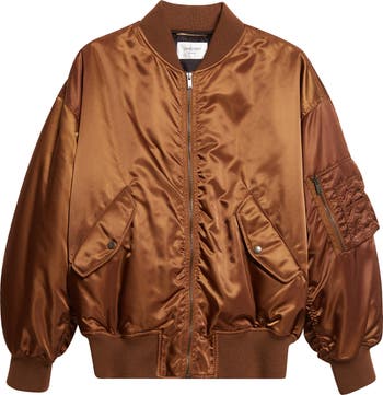 Channel the rock 'n' roll spirit of Anthony Vaccarello's Saint Laurent in this satin bomber jacket with a fitted waist balanced by billowed, ruched sleeves.