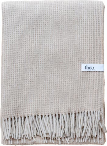 This Large TBCo Waffle Throw Blanket with fringe is woven from 70% recycled wool and 30% mixed recycled fibers. On average, each blanket saves six garments from landfill, turning preloved into reloved. The soft and breathable waffle texture ensures temperature regulation, making it a lovely cloud-like layer for a restful night’s sleep. Recycling wool can be a challenge as the fibers can be too short to respin. Our solution is to blend recycled wool with longer mixed fibers saved from landfill to create a soft and durable yarn, which is woven in a dense twill weave and brushed for texture. All the benefits of wool, in a sustainable blanket! What’s more, they’re even machine washable.