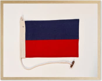 This vintage-inspired print, framed in a natural wooden frame, features a red and navy flag. Sized at 20 inches by 16 inches, this made in the USA frame makes for a beautiful addition to any wall.