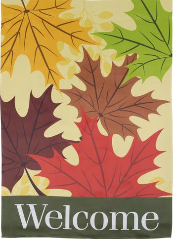 This beautiful fall leaves Welcome flag would be the perfect addition to your fall decor. It displays the classic signs of the fall and is sure to inspire joy from all who see it! Makes a great addition to your home or given as a gift to your friends or family. Features: Fall leaves and Welcome house flag Colorful leaves with Welcome written across the bottom of the flag Features a soft, high-quality fabric for durability Sleeve on top allows the flag to slide onto the flagpole Design is on both sides Care instructions: Hand wash in cold water with mild soap. Hang dry. Use cool iron if needed Dimensions: 40" long x 28" wide Material(s): polyester Note: Flagpole is not included