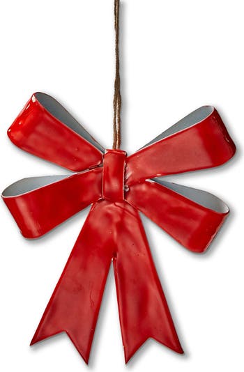 - Red Bow Enamel Christmas Ornament made of 100% iron measures 5 inches long, 1 inch wide, and 6.75 inches high.